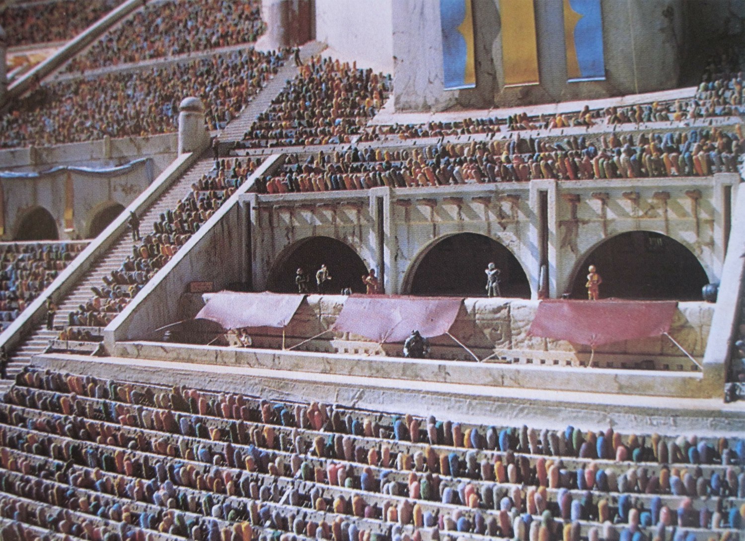 And here is a few photos from the Geonosian execution arena sequence from Attack of the Clones. The arena was sculpted out of high-density foam.
