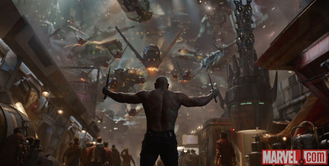 Guardians of the Galaxy opens August 1. Written and directed by James Gunn, it stars Chris Pratt, Zoe Saldana, Dave Bautista, Vin Diesel, Bradley Cooper, Lee Pace, Michael Rooker, Karen Gillan, Djimon Hounsou, John C. Reilly, Glenn Close and Benicio del Toro.