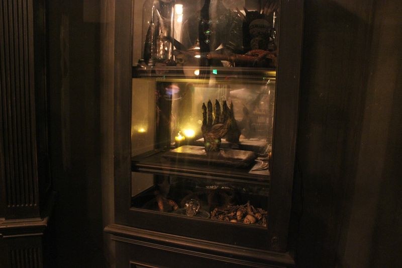 A Closer Look: When you first enter the store, look out in one of the cases up front for The Hand of Glory, a shriveled hand and famous dark artifact. If you get close enough, the hand will snap closed in front of you trying to reach towards you. This is a recreation of a moment from the film adaptation of Harry Potter and the Chamber of Secrets, which involved Harry Potter being grabbed viciously by the shriveled hand (seen in the clip below).