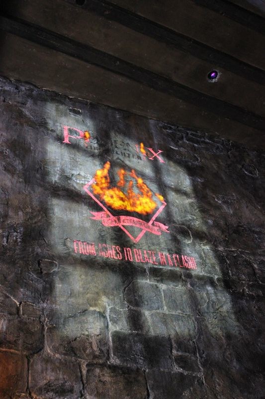On Closer Look: The alley is very dark, and its easy to miss some of the fun details and easter eggs. One of them are the living (ie moving) wanted posters for Bellatrix Lestrange and Fenrir Greyback.Unique Attraction: Knockturn alley features a fun interactive effect which allows muggles to control a skeleton in the window front by moving their body in front of the window. The effect uses some kind of Microsoft kinect technology to mimic the movements of the muggle in front of the window.