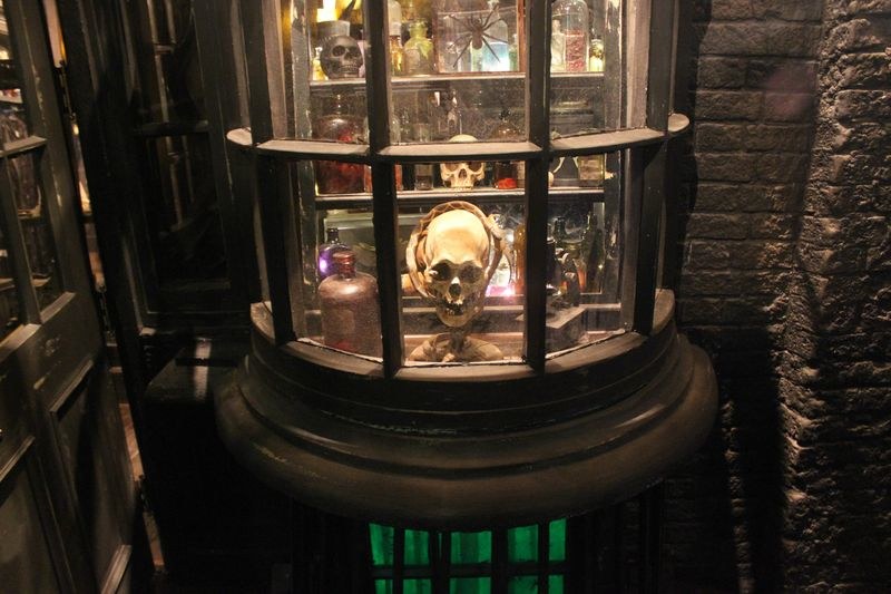 If you turn left under the bridge you will find an alleyway that descends into darkness (even during daytime hours). You are in Knockturn Alley, a shopping area completely devoted to the Dark Arts. It is here you can find Borgin and Burkes, a store which specializes in the dark arts, as well as store fronts for Noggin & Bonce, a shop that sells shrunken heads and a wizarding tattoo shop.