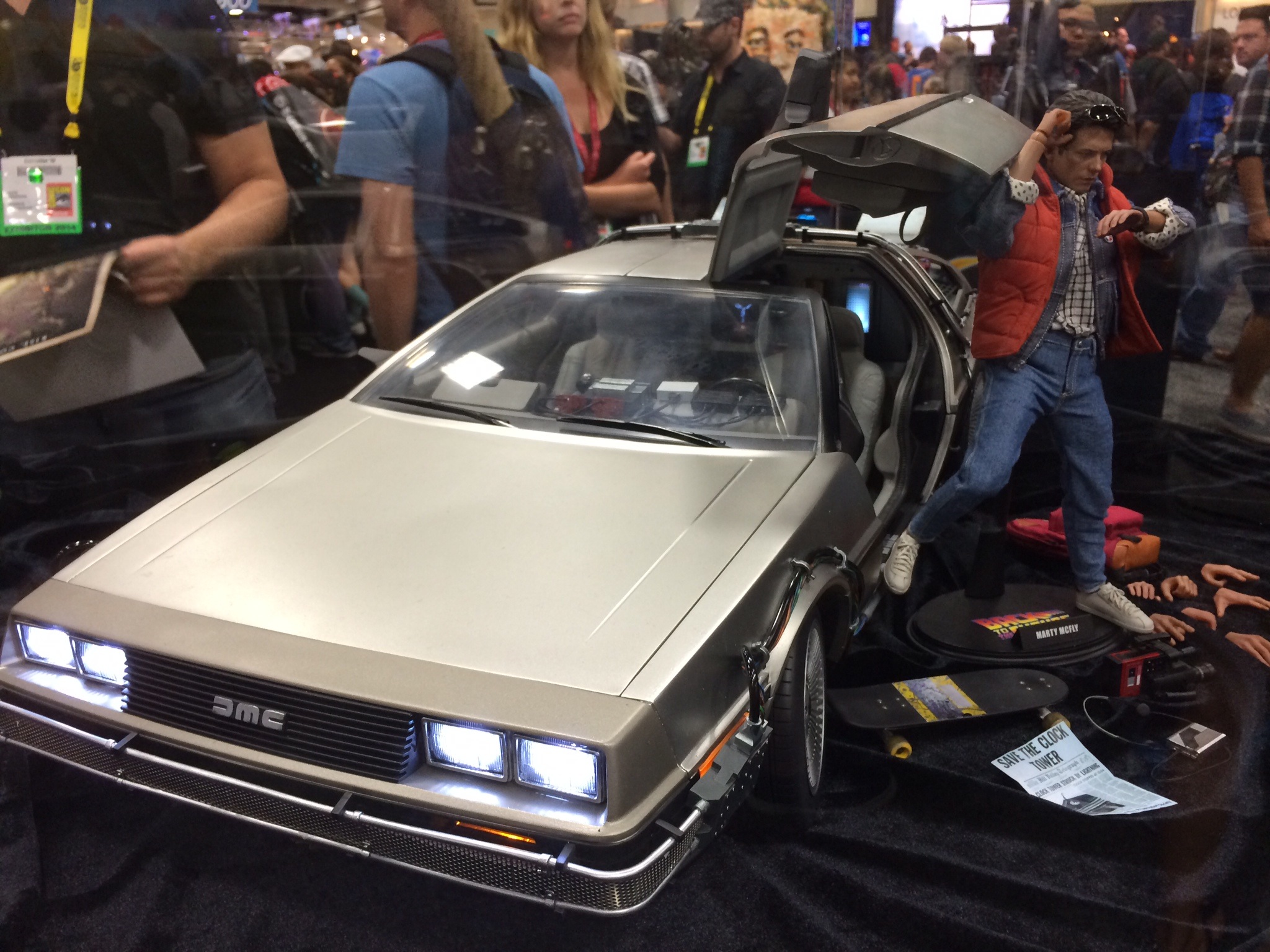 Hot Toys 1/6th scale Back to the Future Marty McFly and Delorean Time Machine on display at Sideshow Collectibles