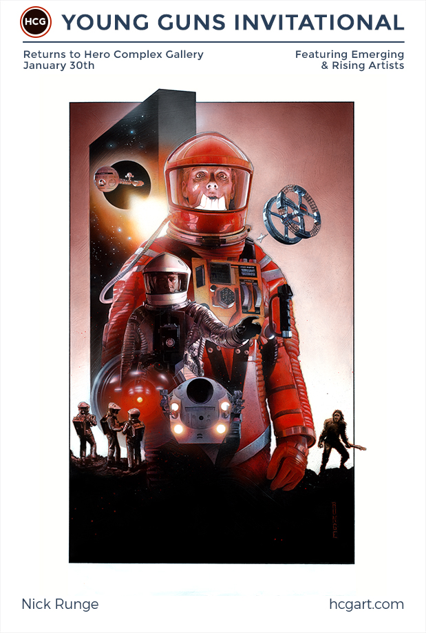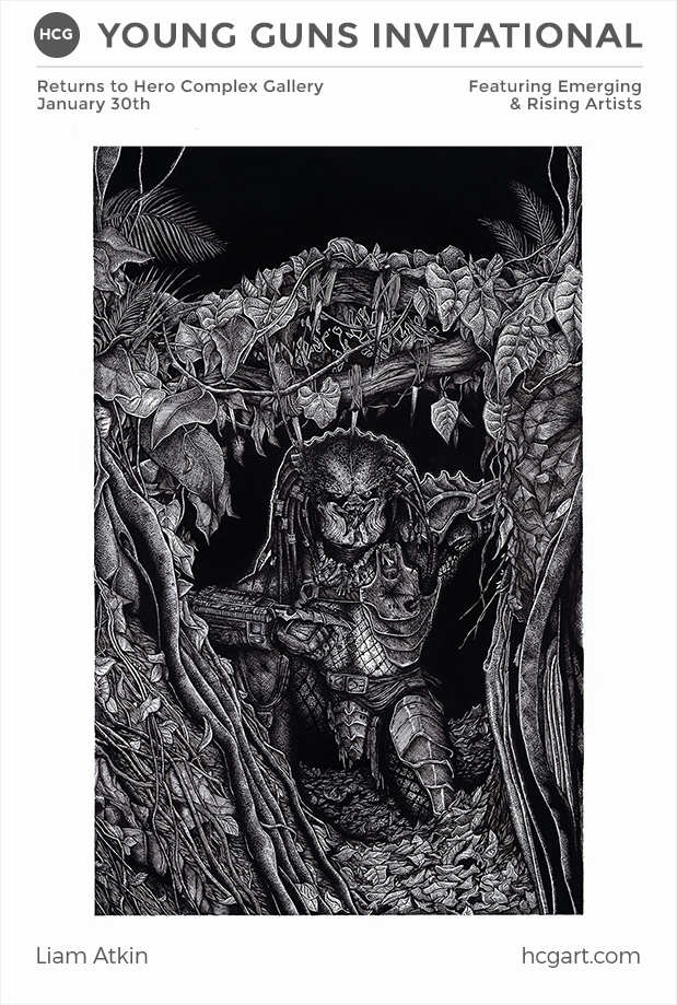 Friday night in Los Angeles, the Hero Complex Gallery is doing a show called Young Guns. It's comprised solely of "emerging & rising artists," each of whom did a series of at least three images all themed together. We've already shown you Tracie Ching's Quentin Tarantino pieces and now, we wanted to give you a quick preview of the remainder of the show. It's a huge, impressive collection of work that will be on display beginning January 30 in Los Angeles. Check out some previews below.