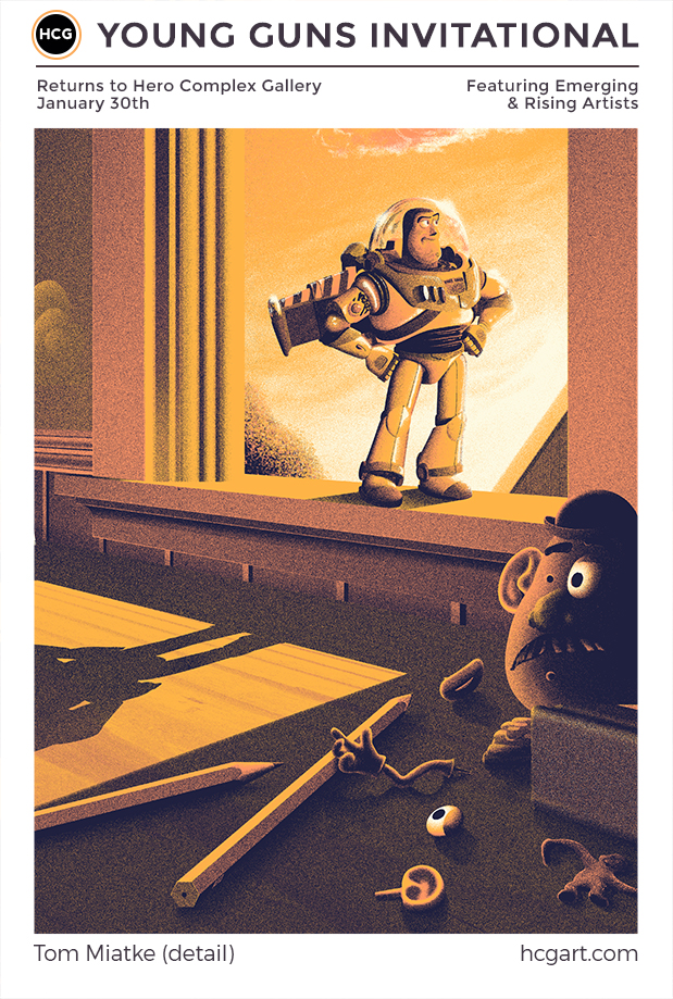 The Young Guns show will be on display Friday, January 30th, 7 – 10pm. Online Sales will begin Saturday, January 31st at about 1 p.m. at this link: http://hcgart.com/