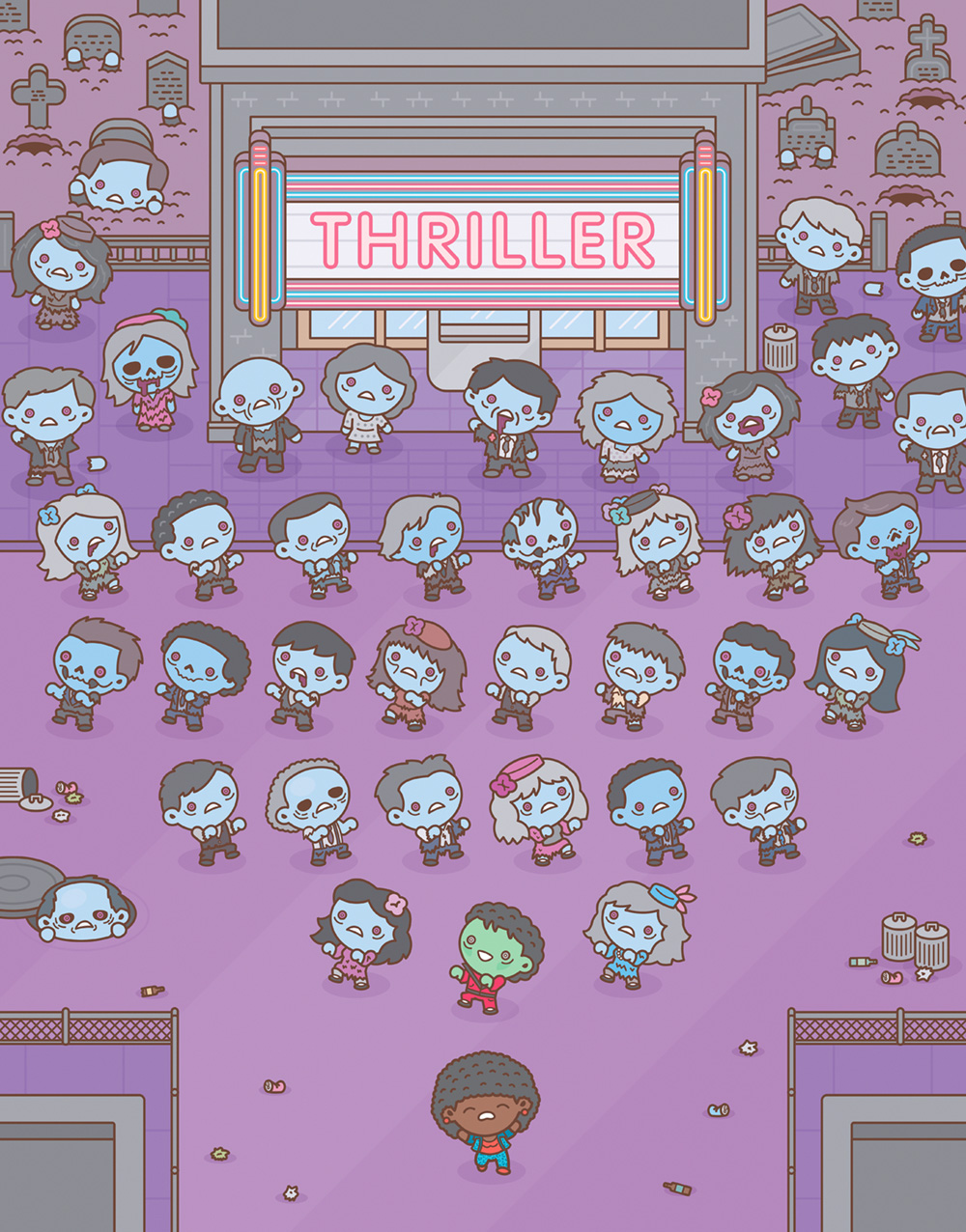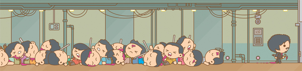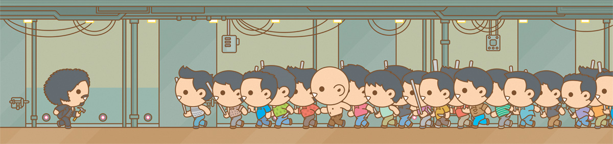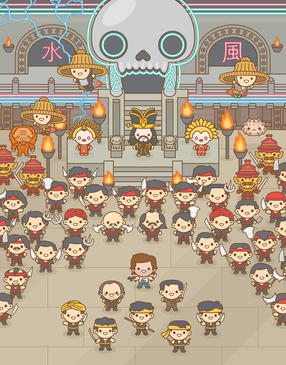 Some examples of this "Mass Hysteria" is the end of The Avengers, the Crazy 88 in Kill Bill, the hallway in Oldboy, the finale of Raiders of the Lost Ark and many other mass gatherings in pop culture, all viewed through that cute little filter. The results are just beautiful and gory and awesome. In a phrase: mind-blowing. Check out a small sample of the 30 + images in the Mass Hysteria art show below.