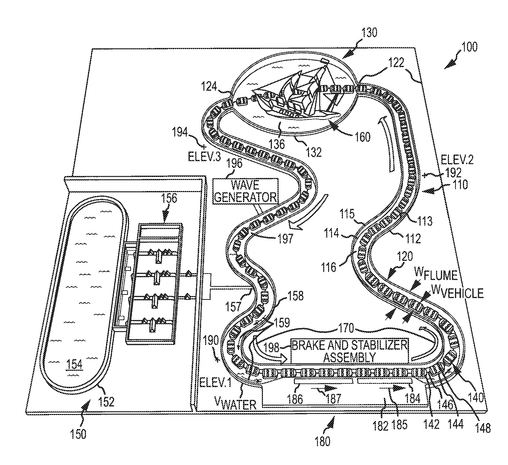 Notice the epic scale of the Shanghai Disneyland Pirates of the Caribbean ride. Disneyland's version of the attraction is my favorite thus far because of the huge scale but it looks like the Shanghai park might be trying to beat Anaheim's version. It also looks like the ride will use either the new "Omnimover boat ride" technology or underwater controlled boat ride system (via Matt G) which Walt Disney Imagineering patented a couple years back (images below copyright Disney Enterprises).