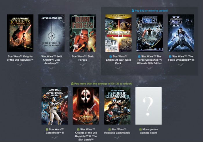 Humble Bundle, an awesome internet service, is going for the full Star Wars right now. Donate any amount you want to get a bunch of old school Star Wars video games. Click the below image for more information and to download.
