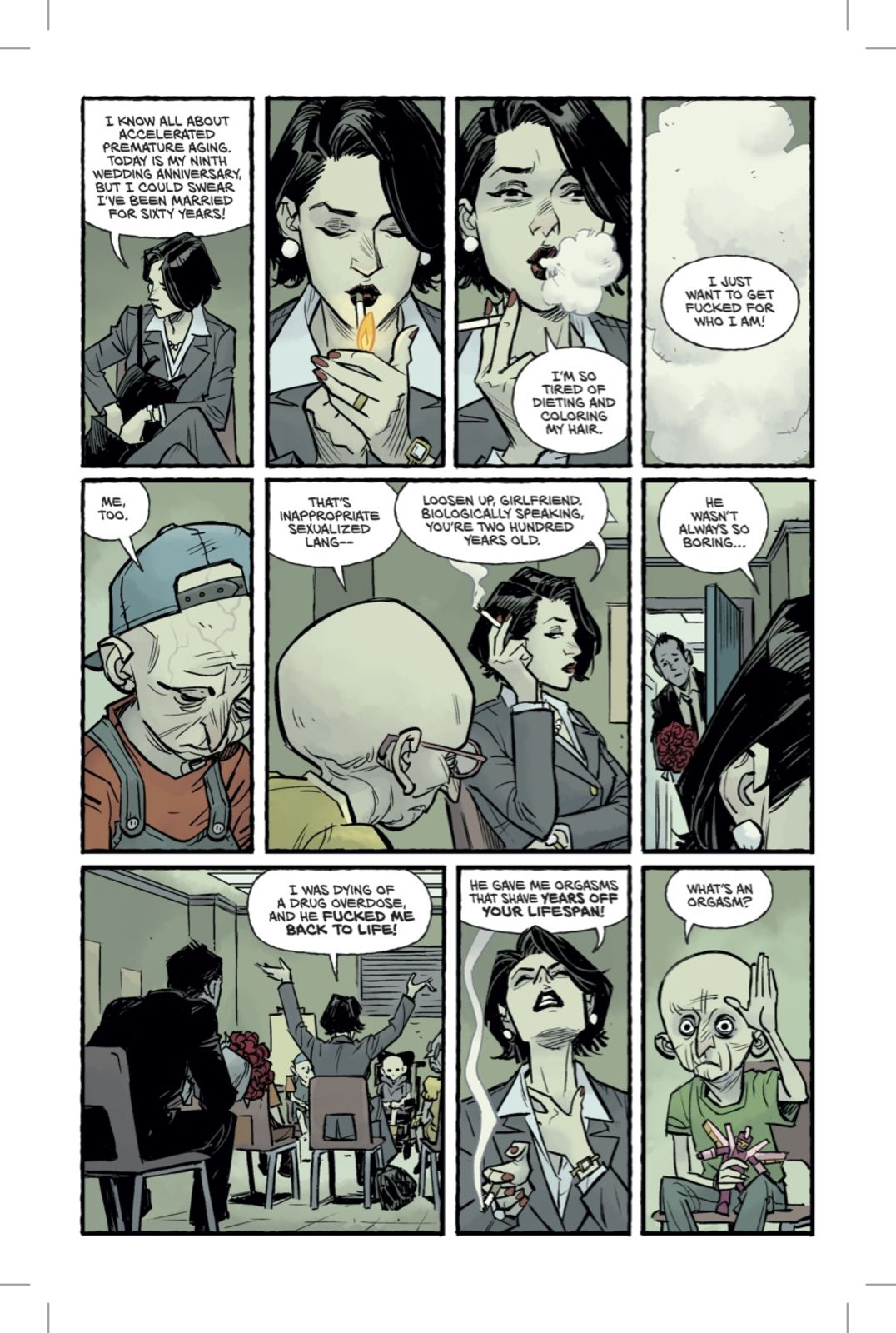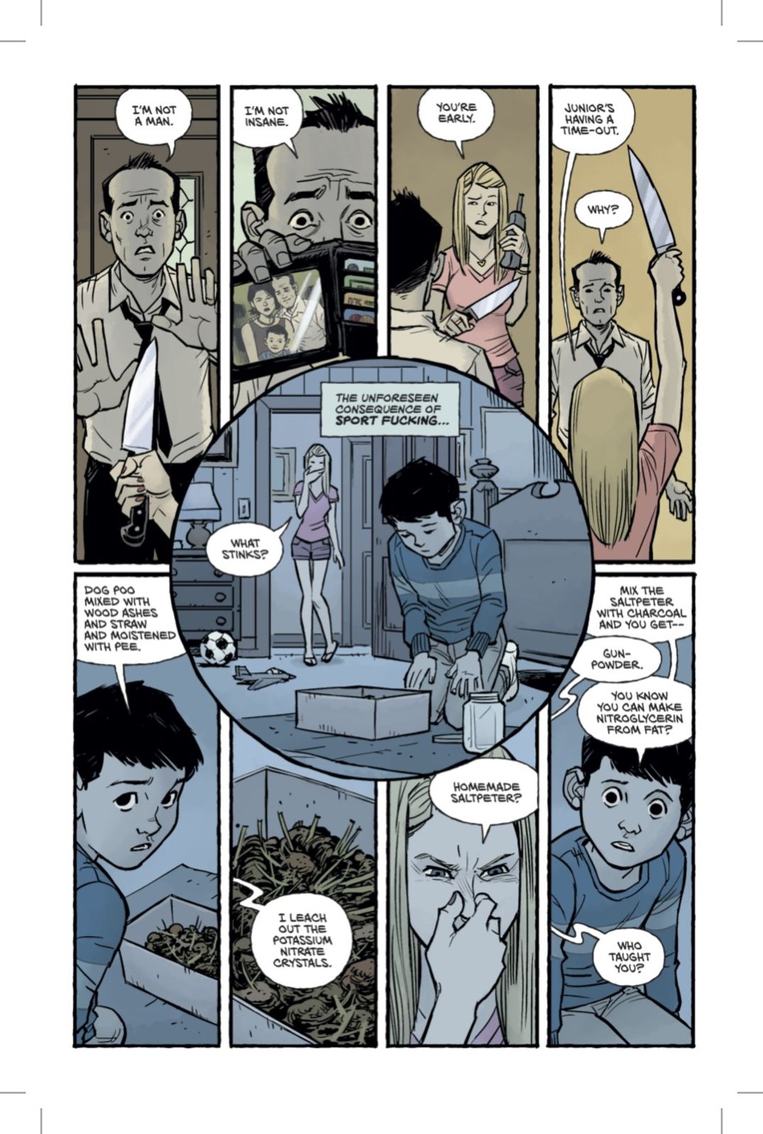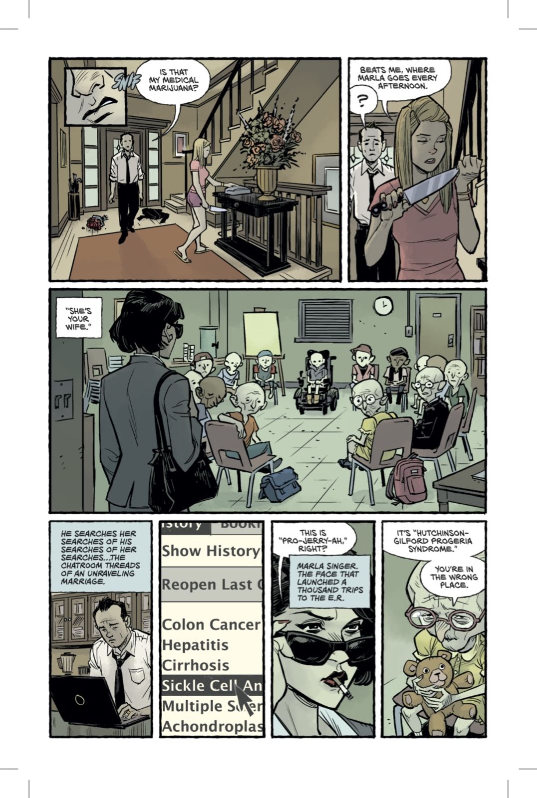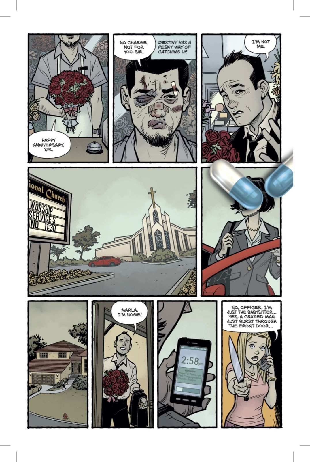 That sequel is coming in May, and you can also preview the first issue right now. The first six pages of the debut installment are online, and they introduce a version of the familiar narrator, now almost a decade older and going by the name Sebastian and "enjoying" married life with an increasingly uneasy Marla Singer, with whom he has a son who is starting to demonstrate some uncomfortably familiar tendencies.