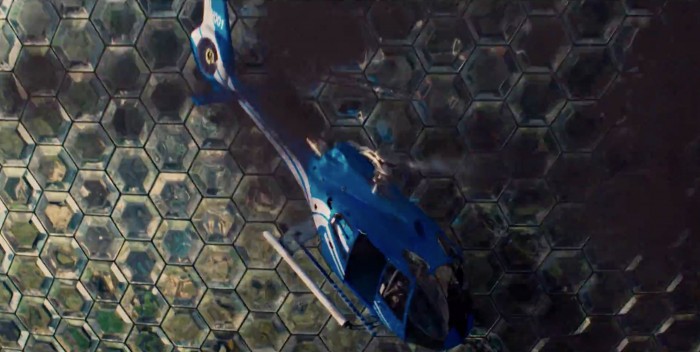 The Helicopter crashes through some kind of sphere structure...