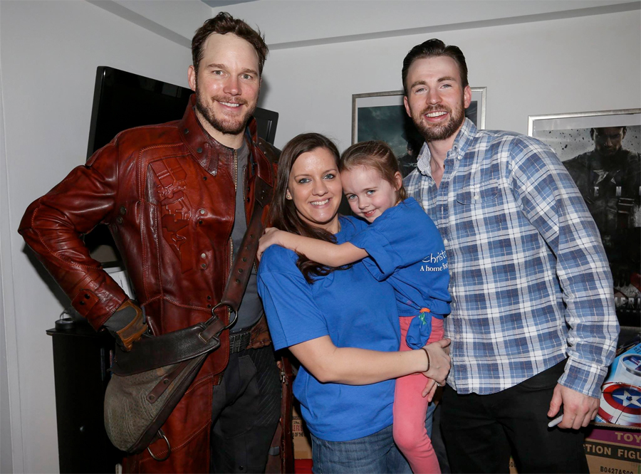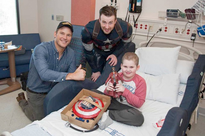 This is just more wonderful evidence that Chris Pratt is one of the coolest, most generous actors working today. We already new he had a heart of gold since he teamed up with fellow Marvel star Chris Evans to visit a couple of children's hospitals following an infamous Super Bowl bet. At one Pratt dressed like Star-Lord from Guardians of the Galaxy and at another Chris Evans dressed as Captain America. Here's a couple photos from their visits: