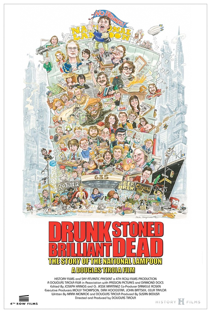 Director Douglas Tirola's documentary about the Lampoon, DRUNK STONED BRILLIANT DEAD: THE STORY OF THE NATIONAL LAMPOON, cleverly chronicles its founding by two former Harvard students, its growth, demise and everything in between. Told thru fresh, candid interviews with its key staff, and illustrated with hundreds of outrageous images from the mag itself (along with never-seen interview footage from the magazine's prime), the film gives fans of the Lampoon a unique inside look at what made the magazine tick, who were its key players, and why it was so outrageously successful: a magazine that dared to think what no one was thinking, but wished they had.