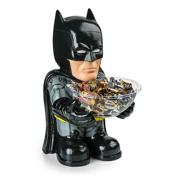 Has anyone ever looked more miserable holding a bowl of candy than Batman right here?