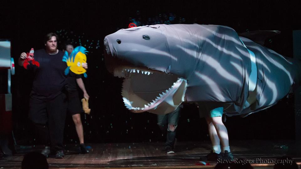 Like Old Murder House's past productions, the central joke of Jaws: Live! is that it's a fairly exacting recreation of a beloved movie – it just so happens to be on a stage and performed with deliberately lo-fi props by actors who manage to keep a straight face no matter how absurd things get. This makes the divergences from the source material all the more surreal. Sometimes, those changes involve characters going off-script and falling into profanity-laden tirades. Other times, they involve musical numbers where the shark takes a break from tormenting the crew of the Orca to sing "Part of Your World" from The Little Mermaid, backed up by Flounder and Ben Gardner's severed head.