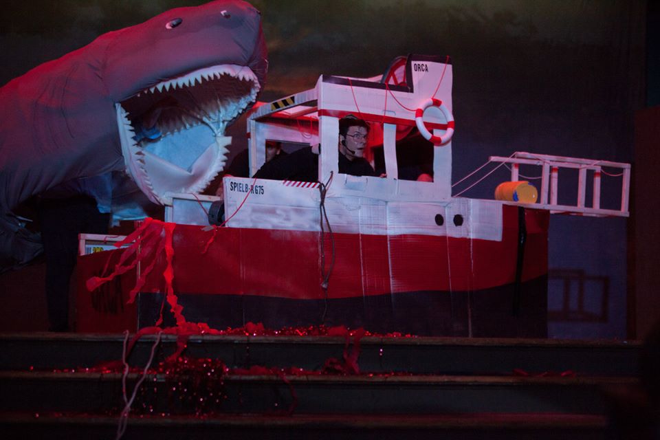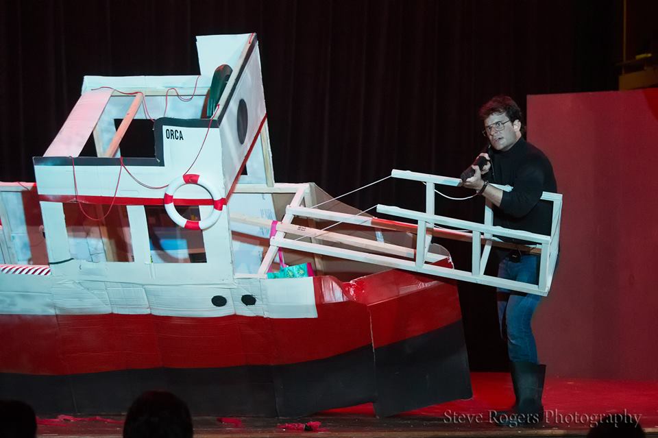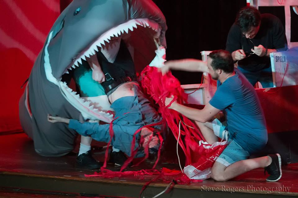 This past July, the Austin, Texas-based Old Murder House Theatre transported Steven Spielberg's Jaws to the stage. Their production, a beat-for-beat recreation of the original film with only a few deliberate changes, was a thing of chaotic beauty. On sets made of cardboard, held together with duct tape and a prayer, the cast and crew created a show that was one part parody, one part homage, and one part, uh, something else altogether.