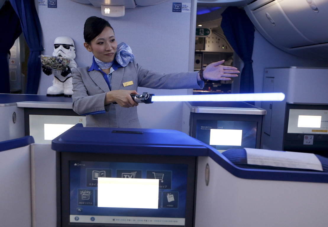 Flight attendants with lightsabers? Count me in. See more photos here.