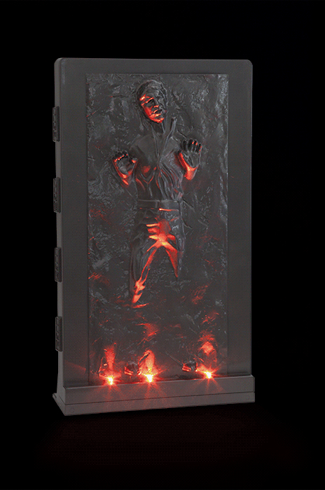 The Han Solo in carbonite sculpture is available for purchase right now at ThinkGeek for $49.99, which isn't bad when you consider that a real life-size Han Solo in carbonite would cost you thousands of dollars.