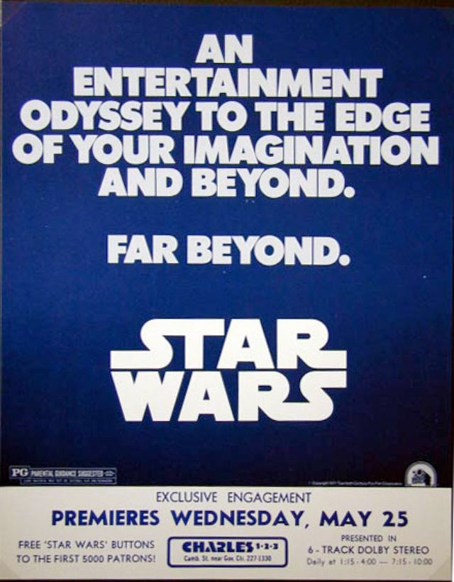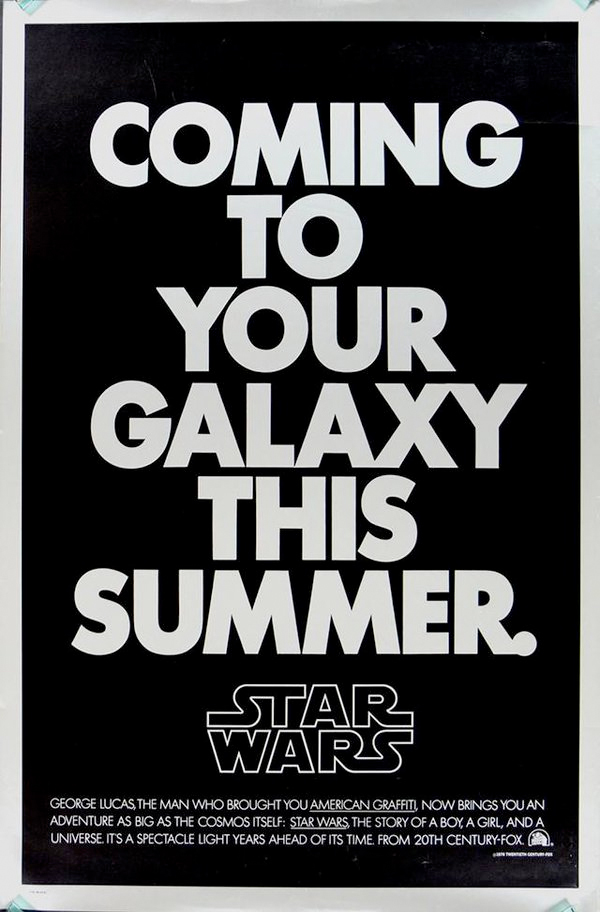 Do any of those posters look familiar? For younger Star Wars fans, they might not strike a chord immediately, but for anyone who was around for the original opening of the film in 1977, they should look rather familiar. Check out three teaser posters for Star Wars (when it wasn't called A New Hope) from 38 years ago: