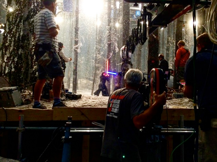 During the production of Star Wars: The Force Awakens, fans were hungry for any set photos they could feast their eyes on. Now with the film in theaters and breaking box office records, there aren't any secrets that can be learned from set photos, but that doesn't mean they don't offer a cool glimpse at production, including the climactic lightsaber battle. This is especially true when they come from the film's cinematographer Dan Mindel.