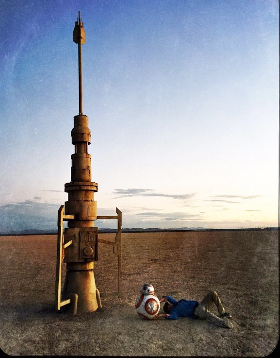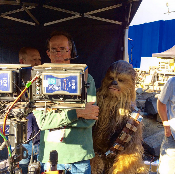 As you can see, Mindel snagged an awesome shot of the snowy forest set from the surface of Starkiller Base when Adam Driver and John Boyega were shooting their lightsaber battle as Kylo Ren and Finn. And he also caught some cool shots of BB-8, as well as some monitor shots of Rey (Daisy Ridley) in the Millennium Falcon cockpit with Han Solo (Harrison Ford), and the moment after Finn and Rey escape from the TIE Fighters on Jakku. This makes me excited to see what kind of featurettes end up on the Blu-Ray and DVD release of The Force Awakens in a few months. You can see more at Dan Mindel's Instagram page right here.