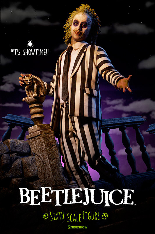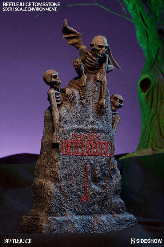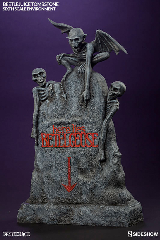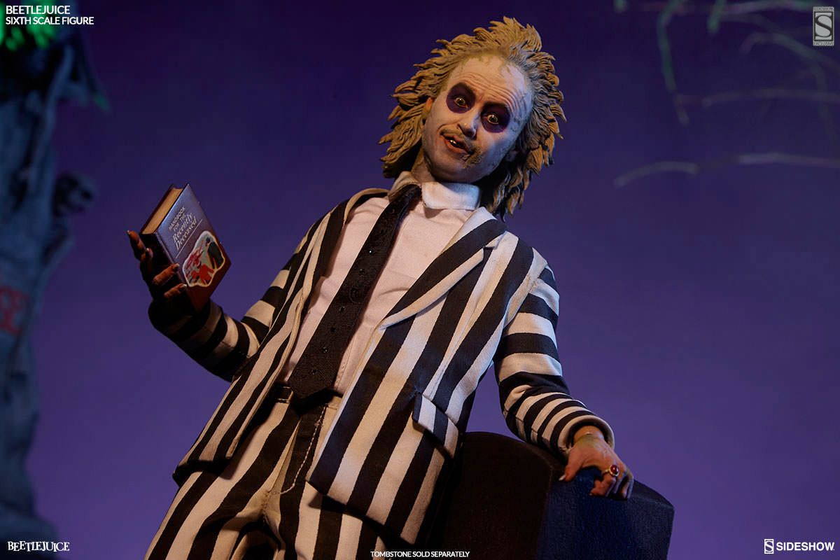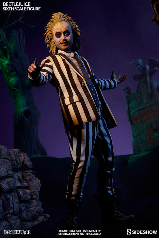 Sideshow Collectibles has just unveiled a new sixth scale Beetlejuice figure, along with the tombstone environment where Alec Baldwin and Geena Davis dug up the bio-exorcist played perfectly by Michael Keaton. Check out the Sideshow Collectibles Beetlejuice figure below!