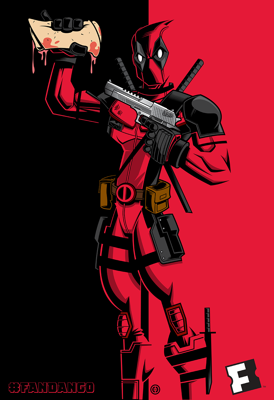 But most importantly, Fandango is using the release of this film to highlight the work of a few talented artists and will be unleashing more Deadpool fan art over the coming weeks. They've sent over a few exclusive samples, so prepare yourselves for edged weapons, Terminator parodies, and, of course, chimichangas.