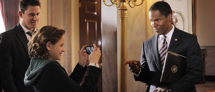 The Actor: Jamie FoxxThe Moment of Crisis: President James Sawyer proposes a Middle East peace plan that will see American troops removed from the region while additional resources are sent in to help ailing nations. Naturally, a few key people in power don't take too kindly to this. Mercenaries storm the White House and take control of the entire building, capturing the President. Soon, the whole thing is revealed to be a coup dressed up to look like a terrorist attack. Meanwhile, a vengeful Secret Service agent plots to launch nuclear missiles at Iran using the president's access codes to start World War III. It's a bad day in general.The Reaction: President Sawyer is no solider and he spends the bulk of his time running and taking cover and getting his ass saved by a tough cop who just so happened to be interviewing for a Secret Service position that day. However, he proves himself formidable, bravely stepping into dangerous situations and refusing to make things easy for his captors.The Final Grade: Since he seems like a good man with a good head on his shoulders and since he manages to generally make wise decisions while under fire and discover the root of the plot against him (it was that dastardly Speaker of the House all along!), President Sawyer gets a solid B. He probably could have handled things a little more smoothly, but hey, sometimes you have to break some eggs to keep your peace plan intact.