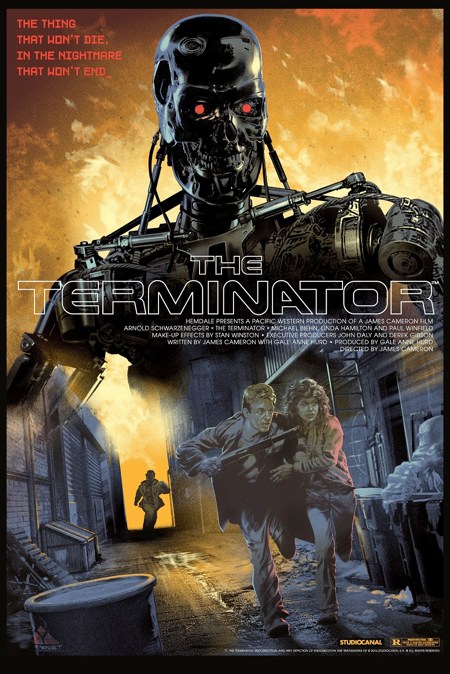But just because Terminator Genisys was a misfire doesn't mean we can't enjoy what the original has to offer. The Terminator is an action classic, even if many think Terminator 2: Judgment Day is the superior film in the franchise. And now French artist duo Stan & Vince have paid tribute to the original film with a new The Terminator pprint that you'll be able to buy this morning. Check it out along with a couple cool variants after the jump.