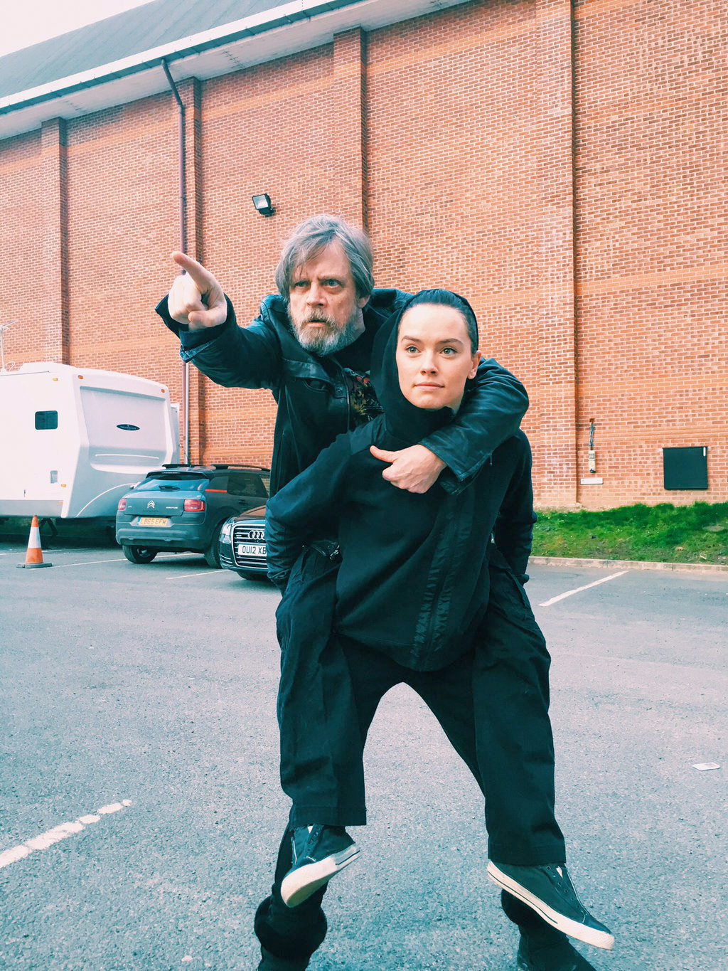 POTD: Mark Hamill Won't Get Off Daisy Ridley's Back In 'Star Wars: Episode VIII' Set Photo