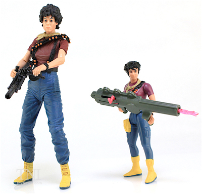 NECA has released some incredible figures for the Alien franchise, but for this new figure revealed on Alien Day last month, they're throwing back to the old Kenner action figures for Aliens. This one pays tribute to a specific Ellen Ripley action figure, which you can see compared to the new figure in one of the images above.