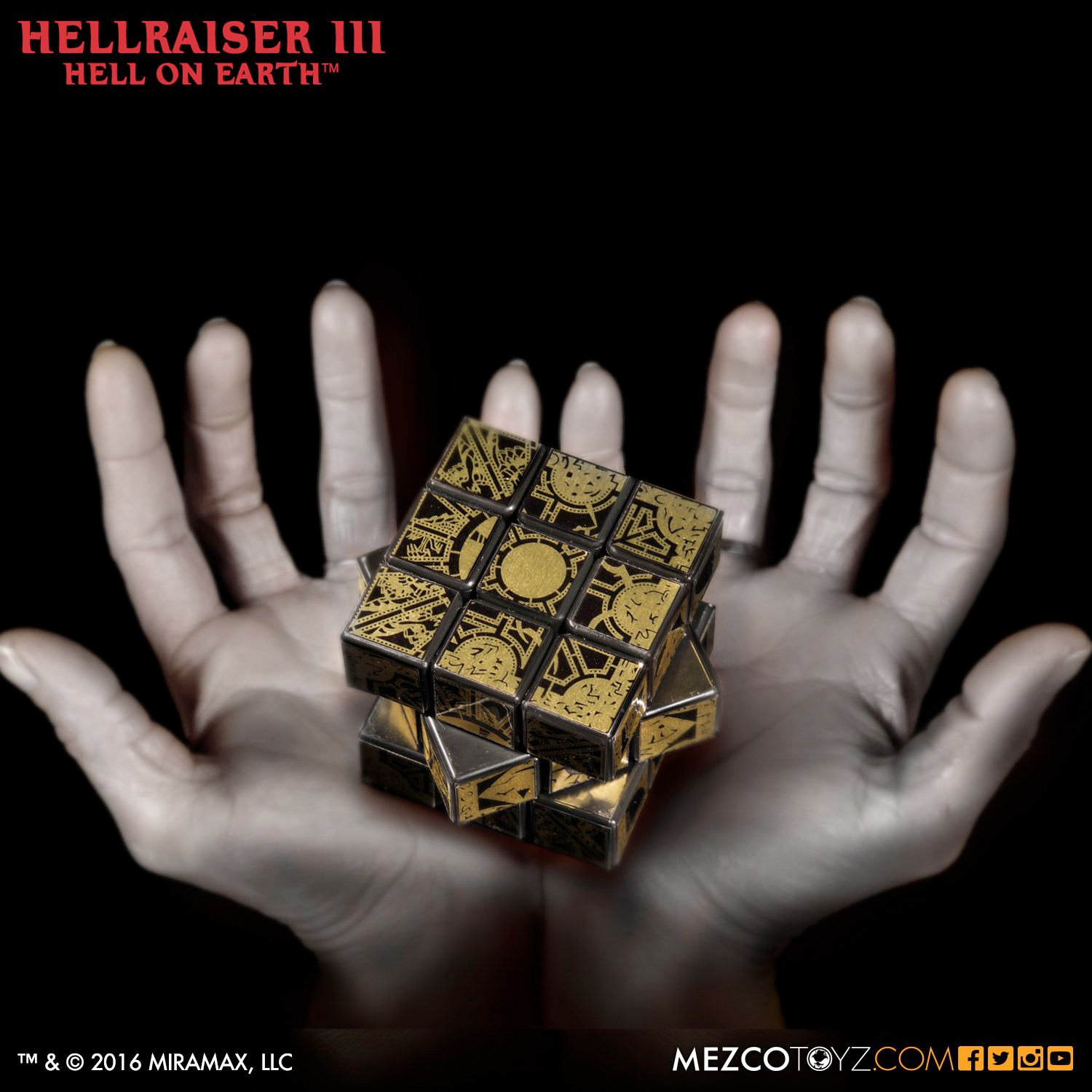 Mezco Toyz has revealed a new puzzle cube that honors the Lament Configuration Cube from Hellraiser III. Really, it's a Rubik's Cube, but Mezco Toyz probably can't use that name due to trademarks and whatnot. This is probably one of the coolest things you could do to improve the Rubik's Cube.