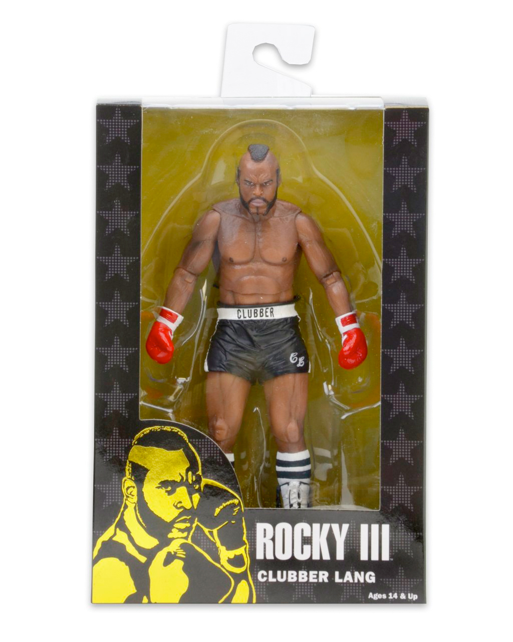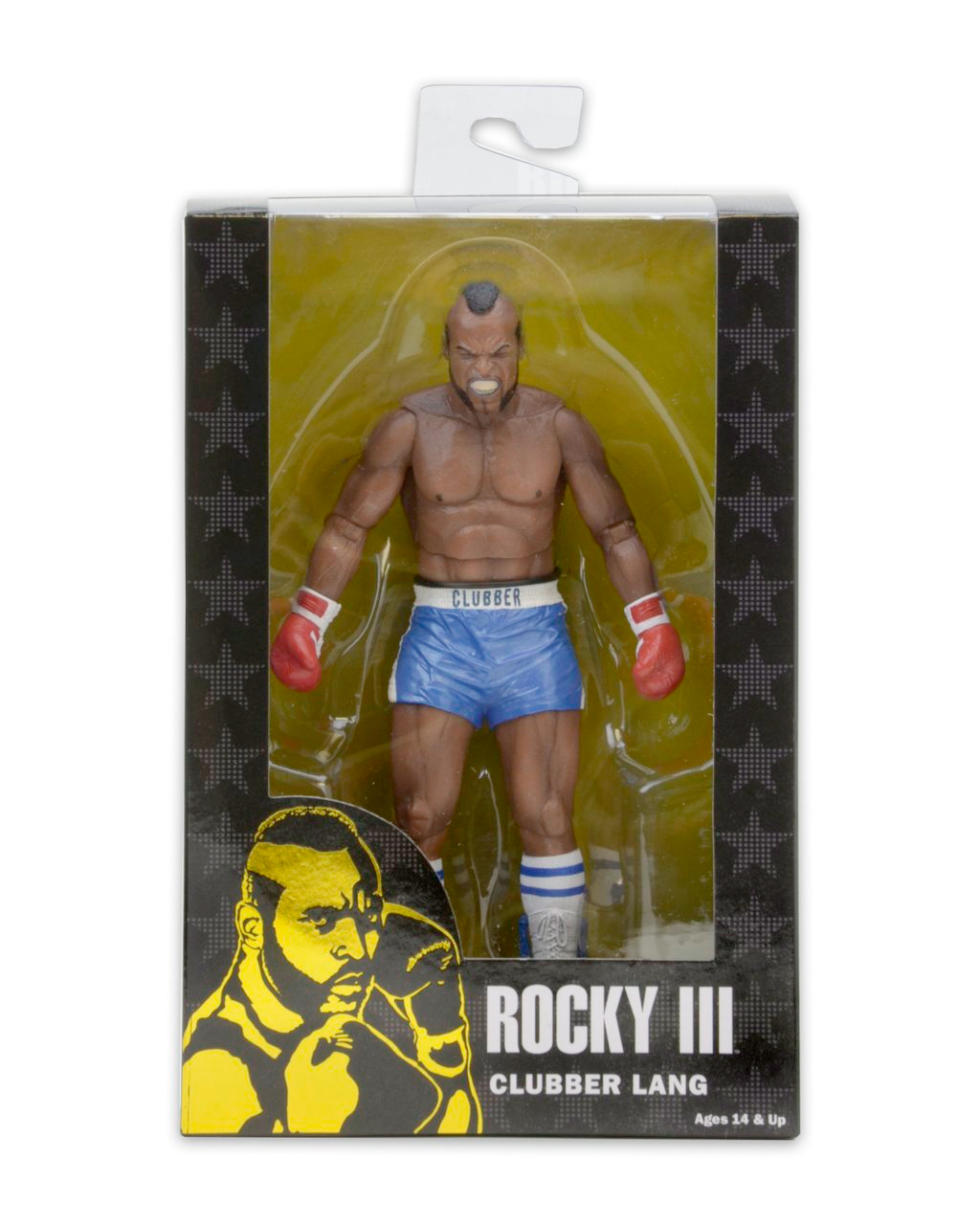 In honor of Rocky's 40th anniversary, NECA is re-releasing some of their 7" Rocky figures that were previously sold out and some new figures that haven't been released. The first series features two different versions of Rocky Balboa and Clubber Lang from Rocky III, and they're packaged in a way that allows collectors to display them while still keeping them in the package. NECA has the figures set for release in June.