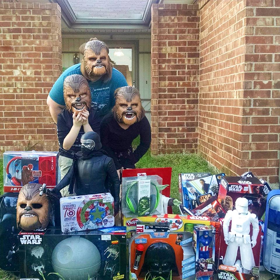 And then Kohl's, who sells the currently-sold-out Chewbacca mask, decided to send her family a mountain of free merchandise (and earn themselves a few positive headlines in the process). You can see the Payne family's haul in the image below. Whoever says that being internet-famous won't get you paid? Well, it gets you paid in a bunch of licensed plastic crap, but it's something.