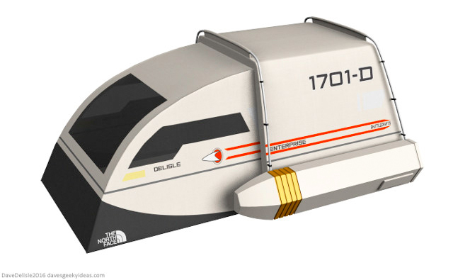Here's the Star Trek tent design from Dave Delisle's blog Dave's Geeky Ideas (via Geekologie):