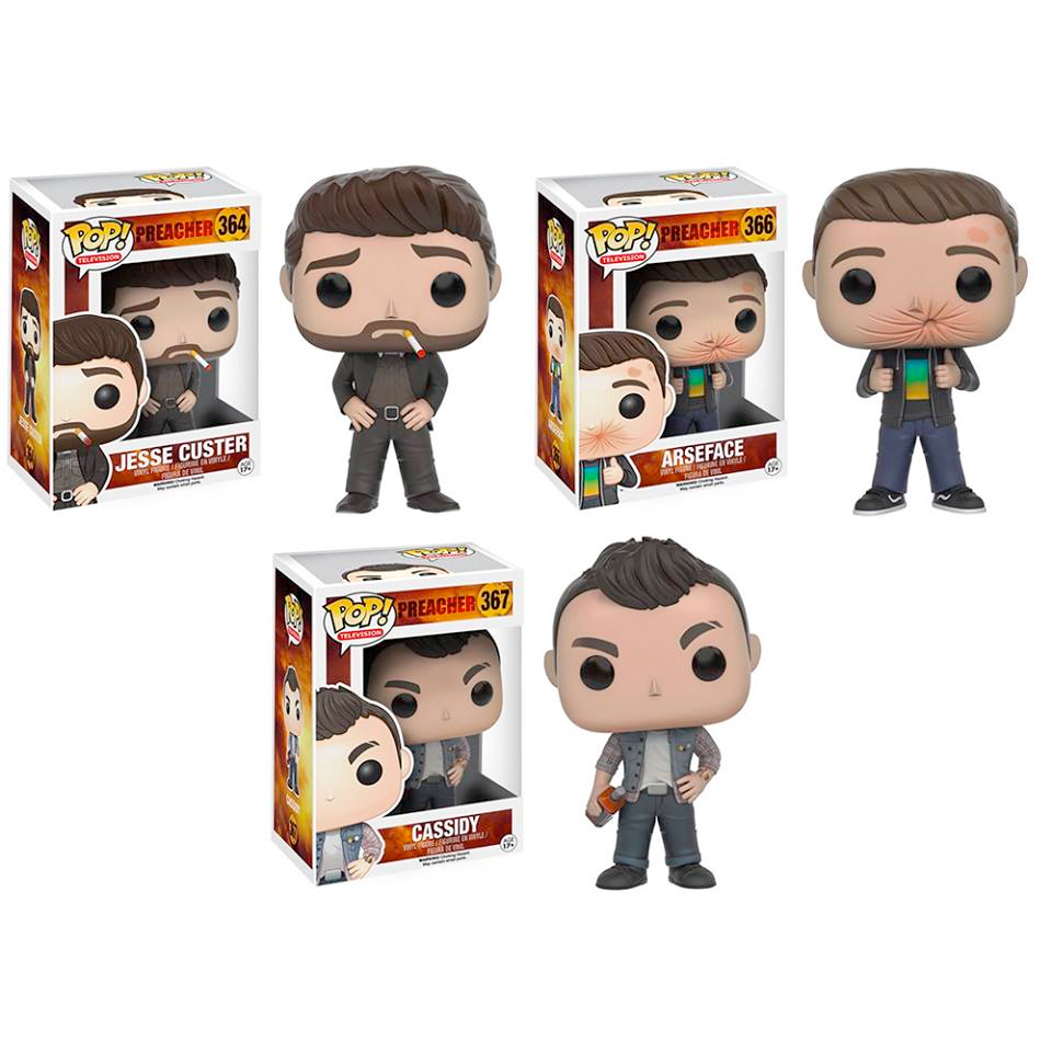 In addition, Preacher is getting a set of figures coming in August. There's only three figures revealed so far featuring Jesse Custer, Arseface and Cassidy. It's a bummer that Tulip isn't included in this batch, but hopefully this is just the first series of Preacher Funko POP Vinyl figures.