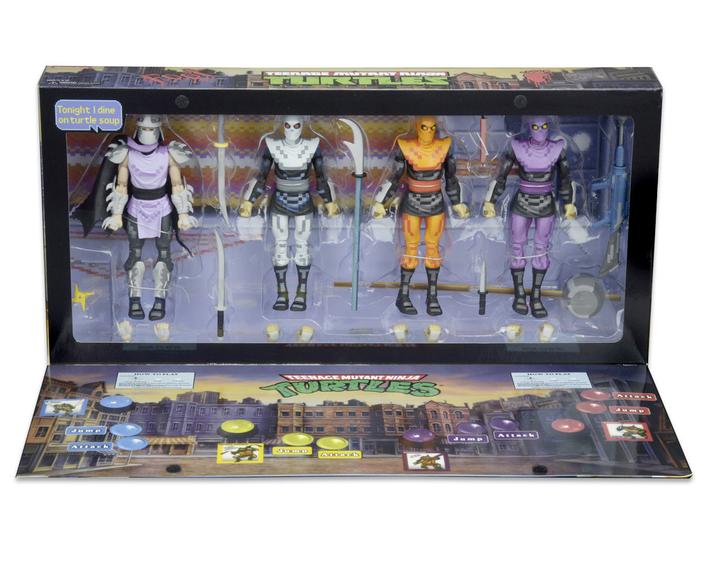 Calling back to the Konami arcade game, NECA has two different sets of figures modeled after the pixelated versions of the heroes in a half shell, Shredder and a few Foot Soldiers.