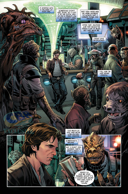 The first issue of Marvel's Han Solo miniseries hits shelves this Wednesday, June 15, and the first five pages have arrived online if you want a taste of what to expect. The series written by Marjorie Liu and drawn by Mark Brooks and if it's anything like the rest the current Star Wars comics, it will be well worth your time and money.