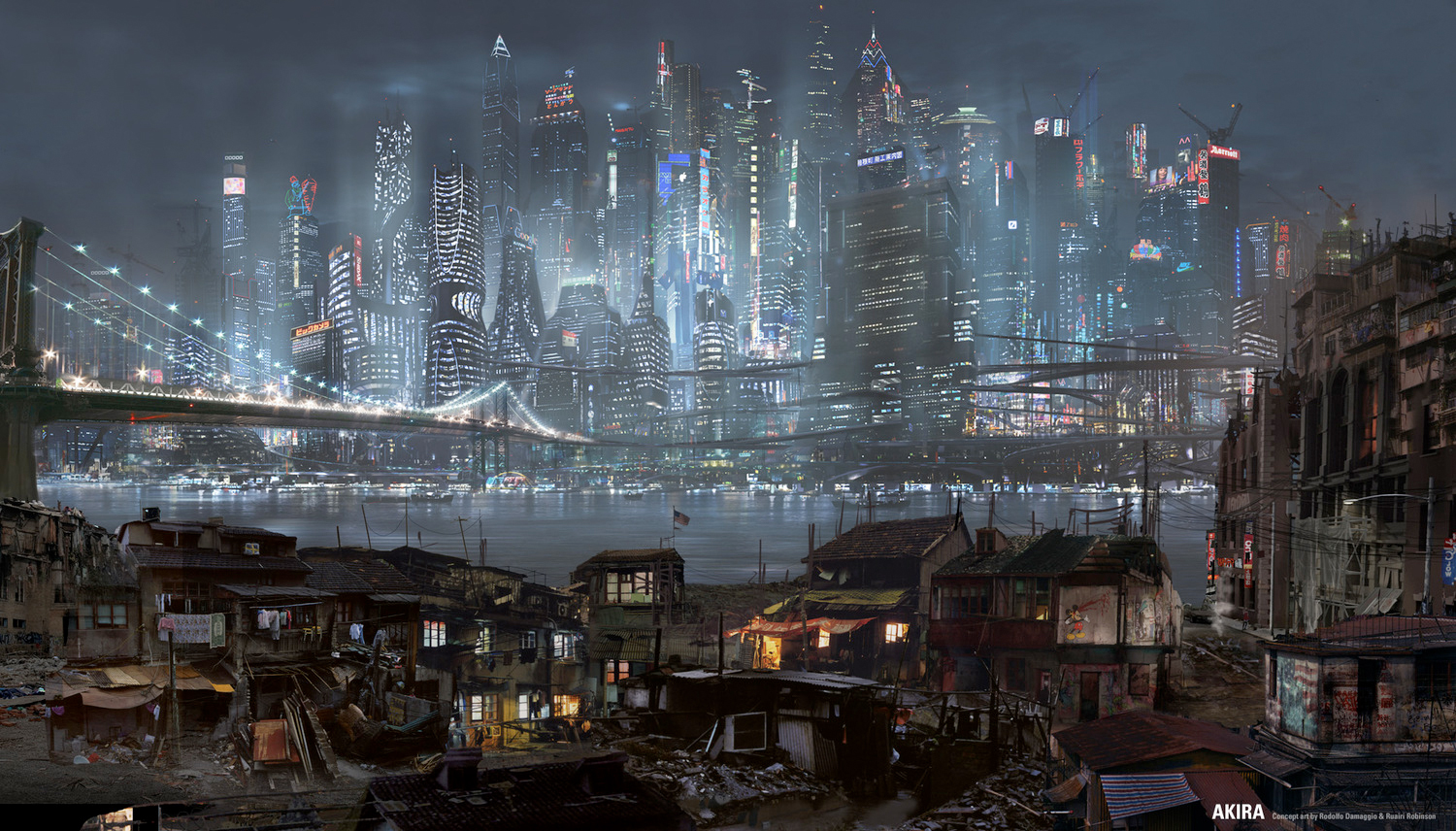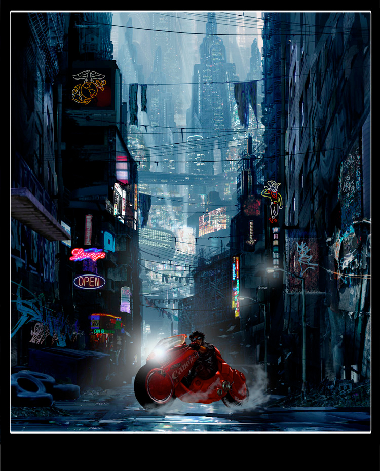 While there will undoubtedly be those who say that the casting of non-Asian actors in these roles is ridiculous, it may somewhat more forgivable since this appears to be much more Ameircanized adaptation of the story. As you can see the company's advertised on the motorcycle have more than the ones from the anime, and while there's undoubtedly some Japanese language in the city concept art above, I wouldn't be surprised if the story didn't take place in Neo Tokyo, but instead a Neo New York with some Japanese influence.