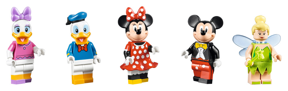 In addition, there are new minifigures of Mickey Mouse, Minnie Mouse, Donald Duck, Daisy Duck and Tinker Bell. Plus, you can populate the castle with some of the other cool Disney minifigures that were made available early this year. They won't all fit in with the aesthetic of Disney's castle, but it's a Disney theme overall, so you'll be fine to just throw them all in there.