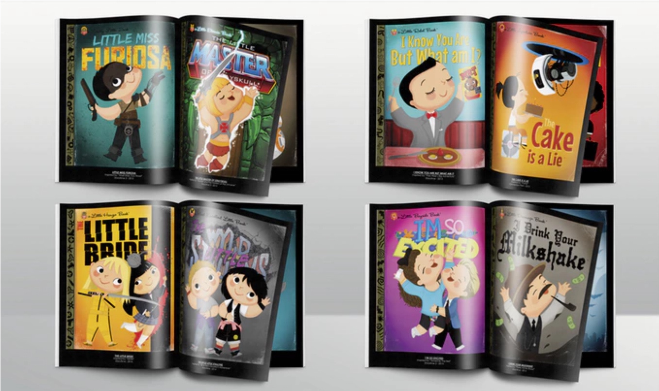 In 2014, I had my first solo art exhibit at Gallery 1988 in Los Angeles, CA. The concept was simple, I took some of my favorite Movies, Music, TV Shows, and Video Games and turned them into covers of children's books. The show was a huge success and the response to my work was overwhelming. "Storytime" reached the front page of Reddit, was featured on sites such as Buzzfeed, Nerdist, Slashfilm, io9, FunnyOrDie, and was even covered by Reading Rainbow. It has been pinned, reblogged, tumblr'd, tweeted, and liked hundreds of thousands of times over. In 2015 I followed up the successful first show with "Storytime 2". Once again, the response was overwhelmingly positive. I have continued the art series beyond the gallery, debuting new prints at various conventions across the United States. One of the things I continually hear from fans that visit me at conventions is that they wish that I would make a book collecting the entire series...