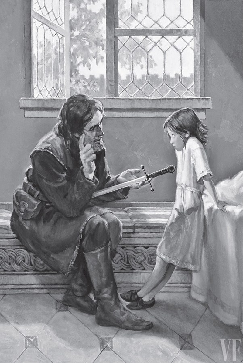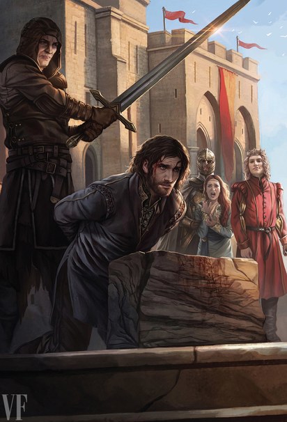 I made a list of all of the images we [already] had that were relevant to just A Game of Thrones. Then I went through the book, chapter by chapter, and tried to figure out, 'Where would our existing art be able to go? Then, what does that leave me?' [...] O.K., this is a chapter about politics. We had an illustration of crossed swords and hands, and I was like, 'Why not? Let's do swords!'