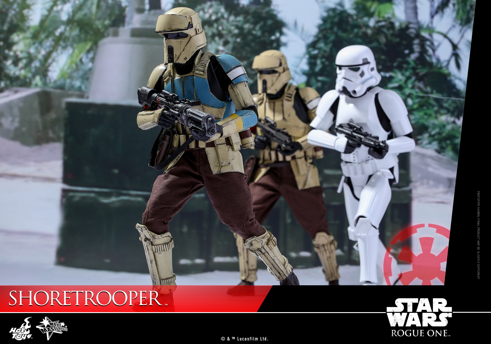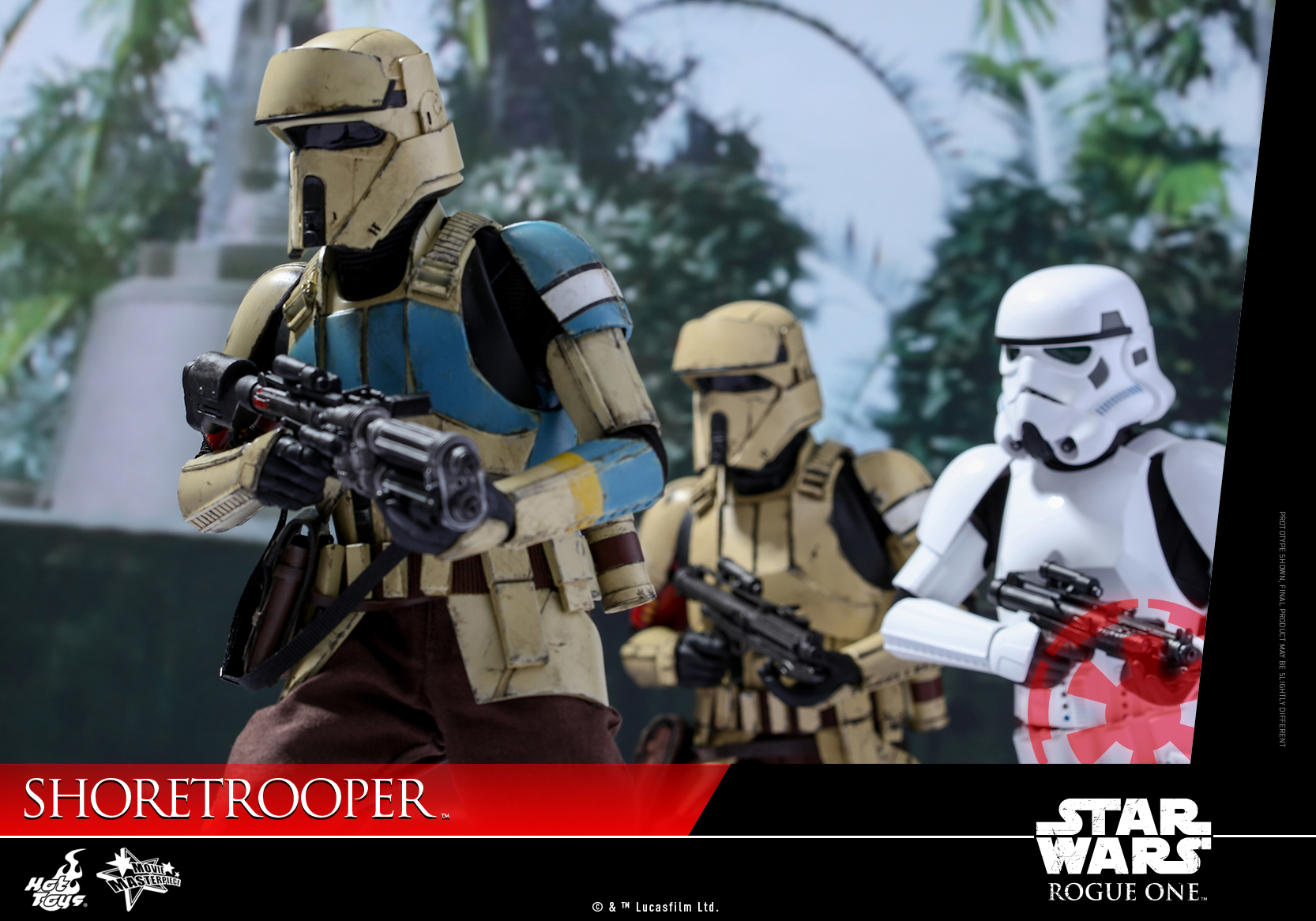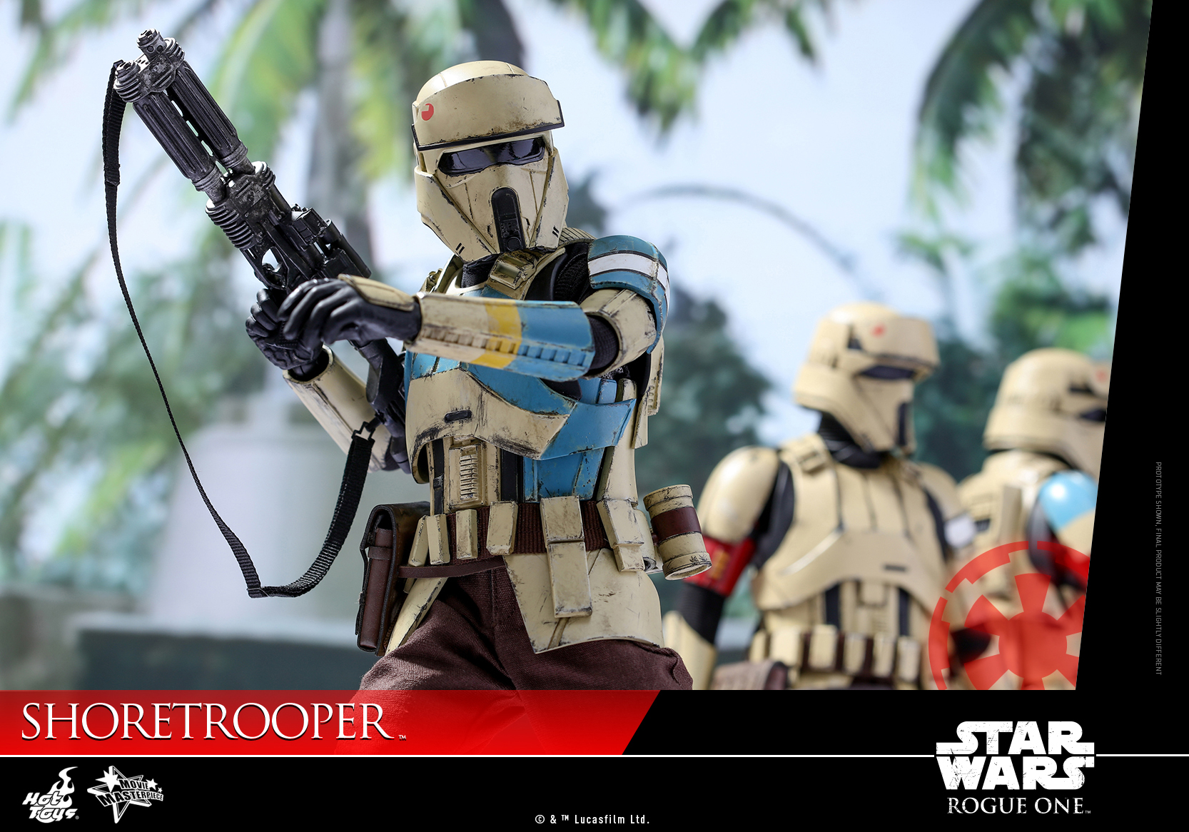 The Star Wars galaxy expands in size and scope as the story advances to new planets and locales never before seen on film. This December, Rogue One: A Star Wars Story will introduce us to the secluded and heavily guarded tropical planet Scarif, where Imperial military installations are established and new specialist Stormtroopers known as the Shoretroopers are stationed to patrol the beaches and bunkers of the planetary facility.