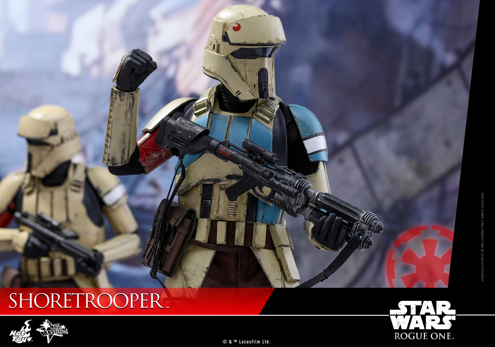 The 1/6th scale collectible figure of the new Shoretrooper is a movie-accurate collectible figure specially crafted based on the image of the Shoretrooper in Rogue One: A Star Wars Story. Featuring a highly poseable new body with a distinctive helmet, all-new armor with weathering effects, a new blaster rifle, detailed utility belt with pouch and other accessories, plus a specially designed figure stand and backdrop.
