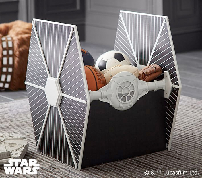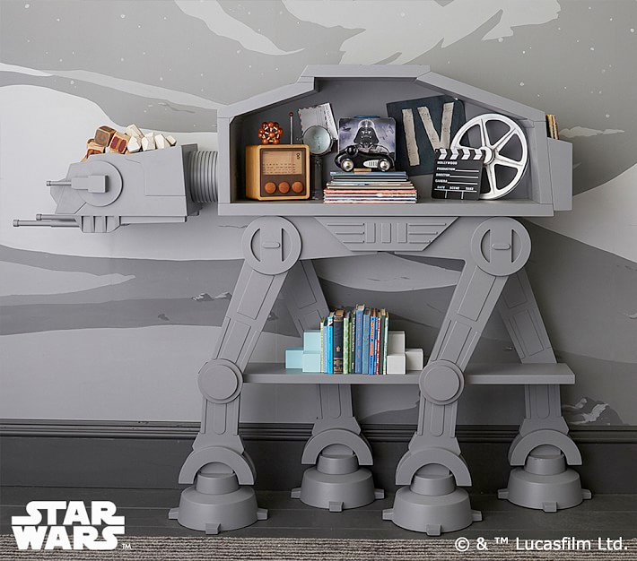 That TIE Fighter desk also comes from Rooms To Go For Kids, and it will cost you $400. Meanwhile, over at Pottery Barn, you can get some TIE Fighter storage units also for $400. Over there they also have a bookshelf in the shape of an AT-AT for $1600 and two chairs with backs shaped like Darth Vader and R2-D2 for $129. Check out all these items and more in closer detail right here.
