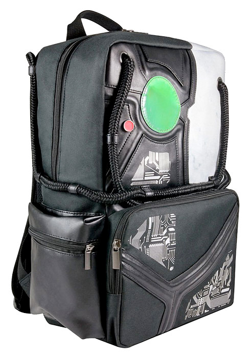 But if you'd rather two-strap it, there's a Borg backpack with metallic circuit board printing and cording inspired by the industrial alien race. There's a large main compartment, a pocket for a tablet, zippered exterior pockets and the promise of assimilation.