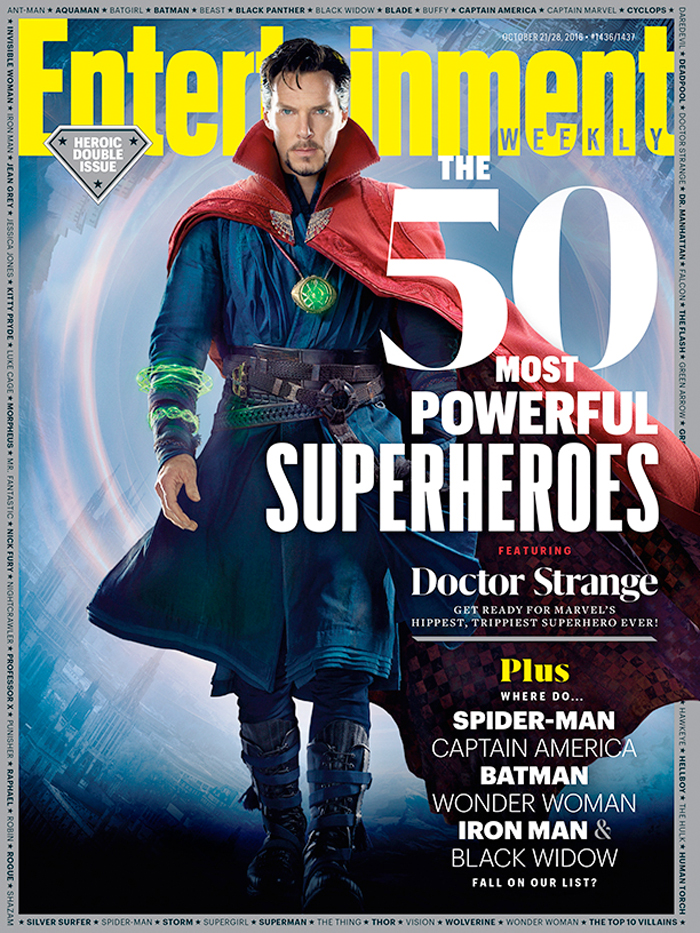 Doctor Strange is on the cover of Entertainment Weekly, which counts down the 50 most powerful superheroes.