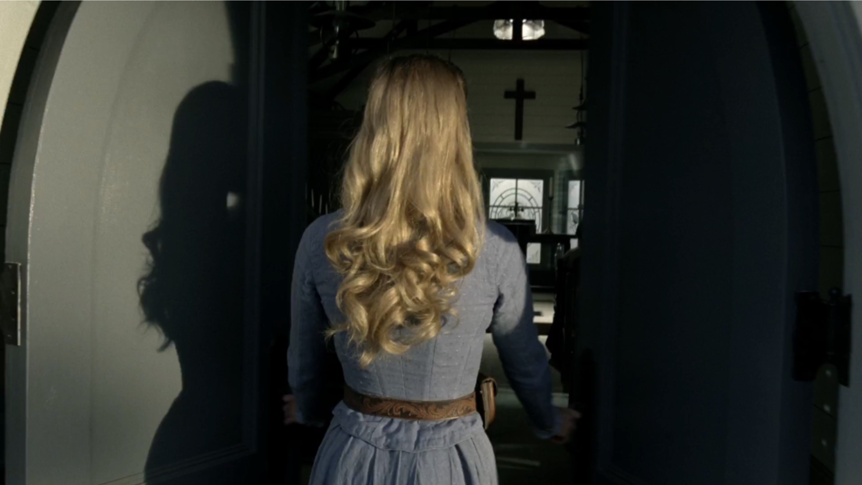 The most interesting image by far is the one of Dolores laying in front of a grave outside of the church. If you look carefully, you can see that the name on the tombstone reads "Dolores Abernathy."