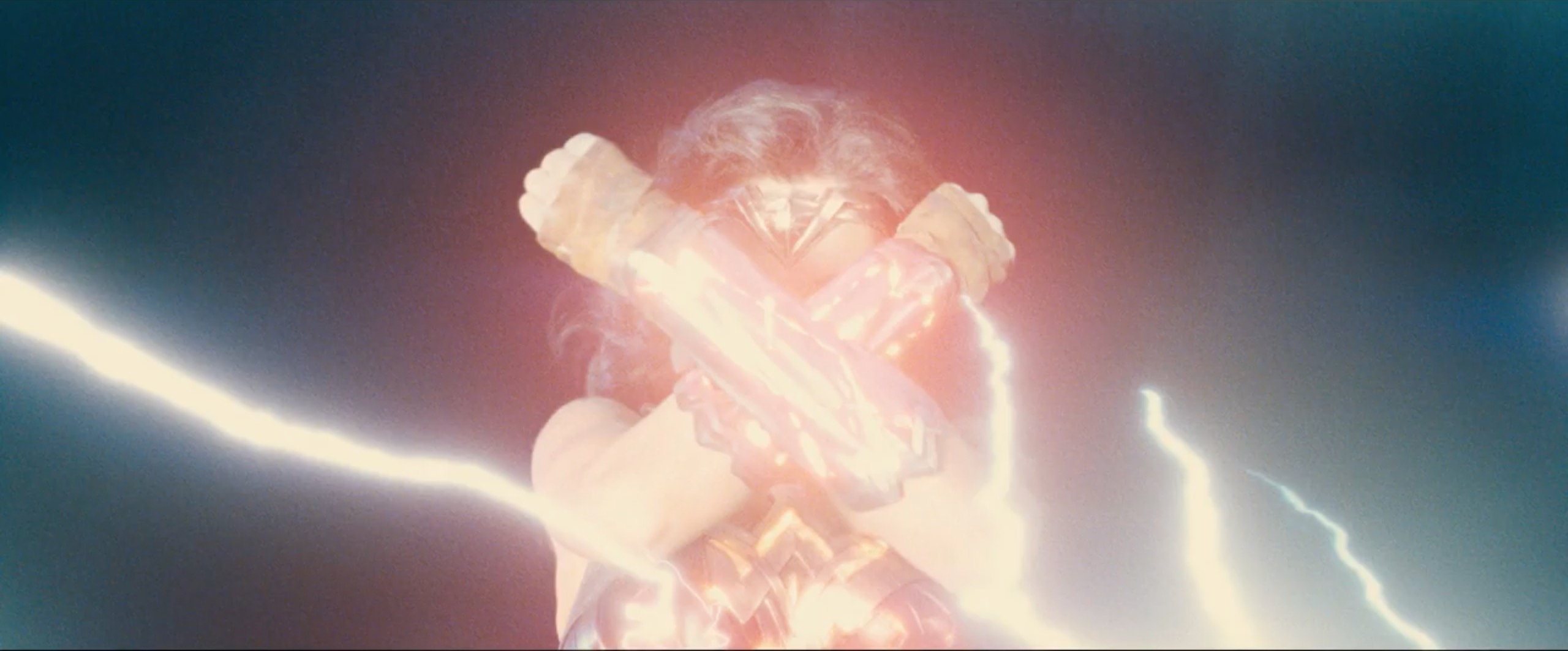 Yep, this one had to be here: the iconic Wonder Woman pose. The question now: what is she defending herself from? And why is it generating bright light and electricity?