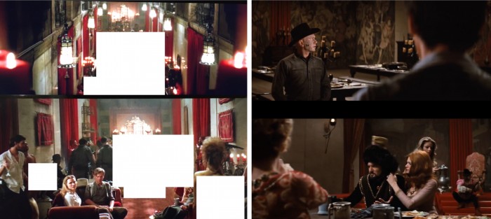 The appearance of the Gunslinger is not the only piece of evidence we have to share with you. In episode number five of Westworld titled "Contrapasso, " we follow William, Logan, Dolores, and El Lazo to a fancy brothel which shares some similarities to the Medieval World scenes we see in the original Westworld movie. I first saw this pointed out on Reddit, where they presented some side by side images.