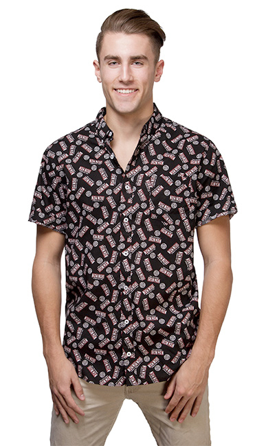 Here's a lame Iron Man button down shirt that you can give to you uncle with poor fashion taste or something.