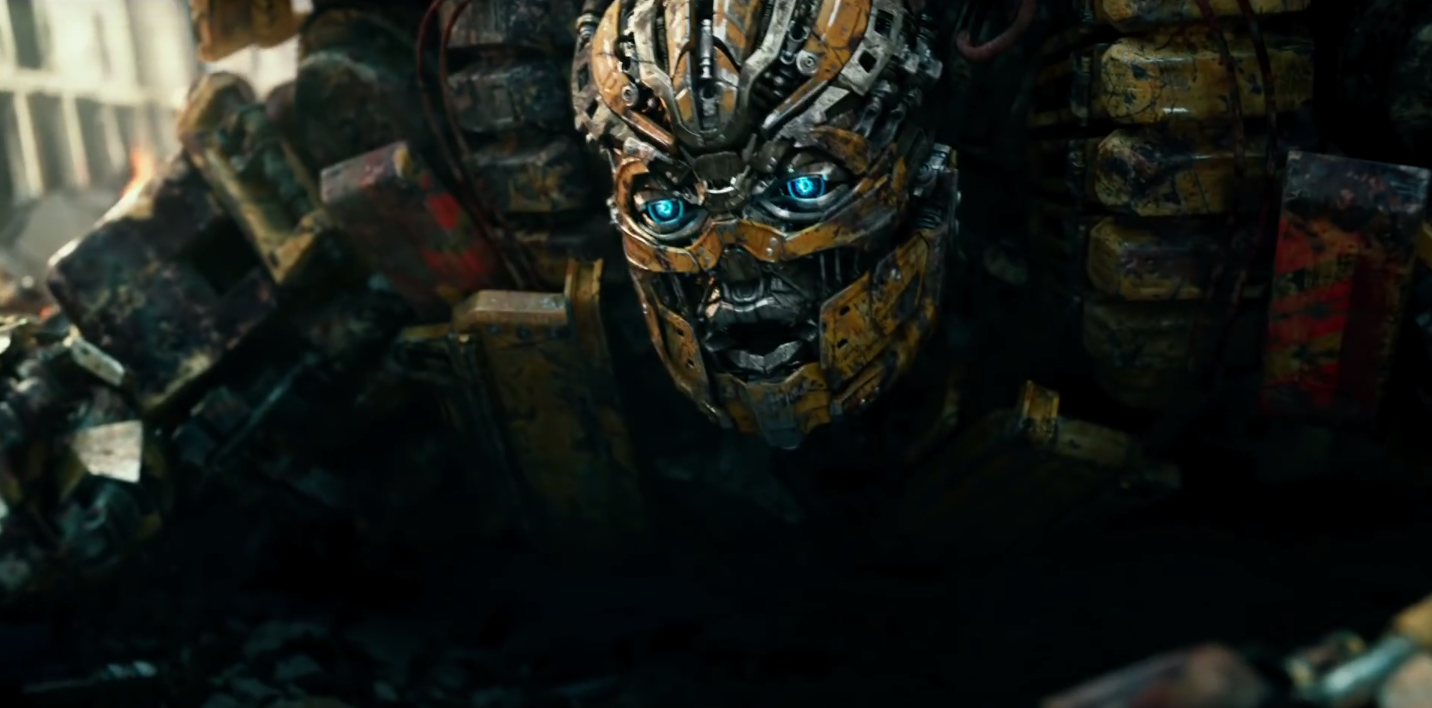 However, something appears to be off about Optimus Prime, because his eyes appear to be glowing purple instead of the usual electric blue as he prepares to stab Bumblebee, despite the pleas of Cade Yaeger. Maybe he's under some kind of trance, as hypothesized before by those with far more knowledge about the mythology of the Transformers and Cybertron.